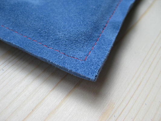 Ich wähle eine große Stichlänge, weil der Transporteur meiner Nähmaschine das Leder nicht so durchflutschen läßt. Das Leder bremst ein wenig.