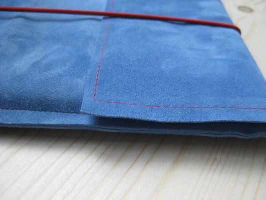 Diese Anfrage erreichte mich schon vor einiger Zeit. Aus eigener Erfahrung weiß ich, wie schwer es sein kann Leder in richtiger Größe und schönem Farbton zu finden. Glücklicherweise kannte ich einen Hinterhof-Laden, der Reste kostengünstig abgibt. Wer selbst auf Ledersuche für Kleinstprojekte ist: Buchbindereien, Schuster und Polsterer können eine gute Anlaufstelle sein. Oder Spezial-Läden, die zum Beispiel Lenkräder für Autos in Handarbeit herstellen etc. Einfach mal höflich anfragen, ob Reste käuflich zu erwerben sind.